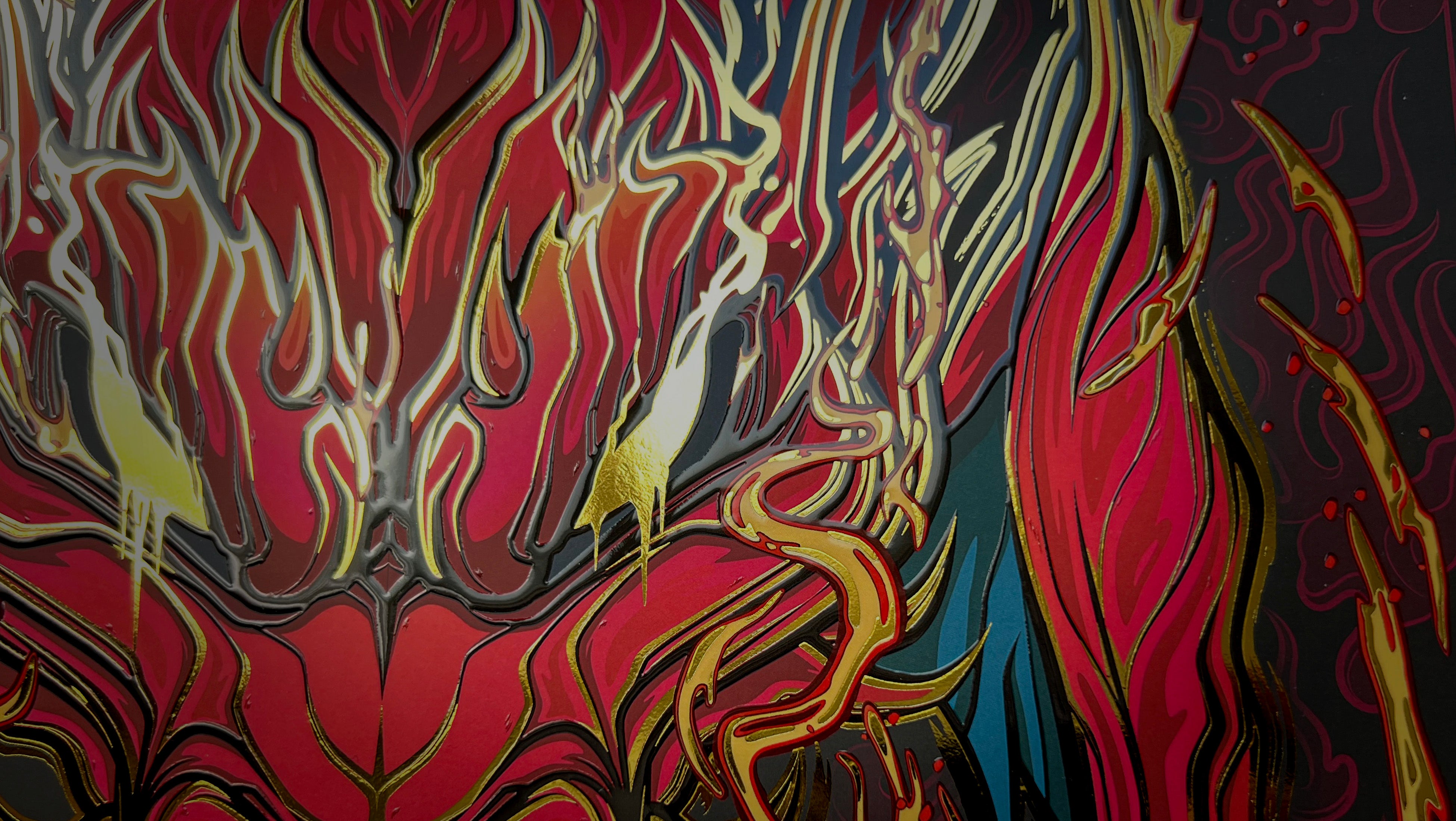 The raised varnish adds depth and texture to the illustration. This process adds a touch of shine thanks to the reflections created by the light.